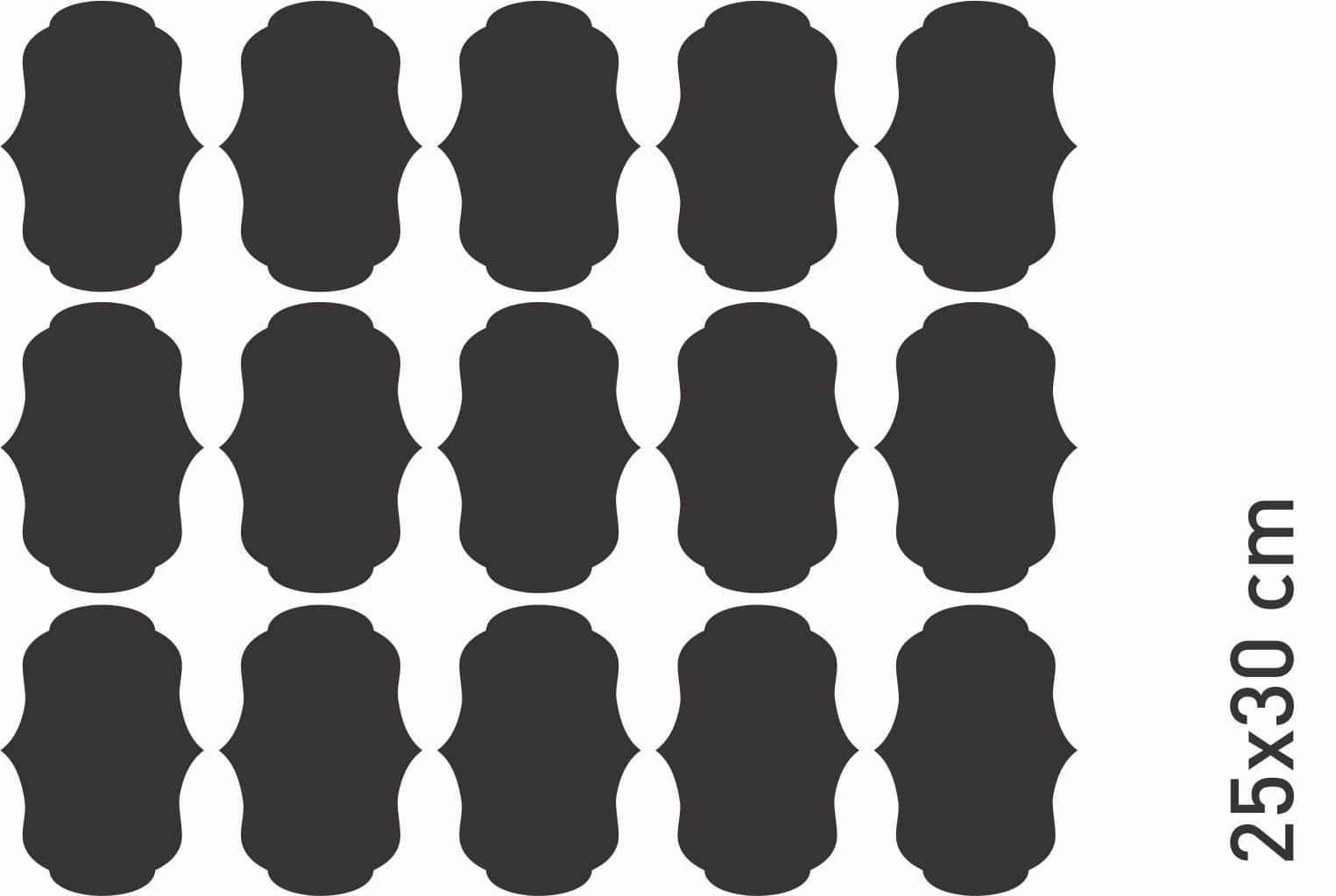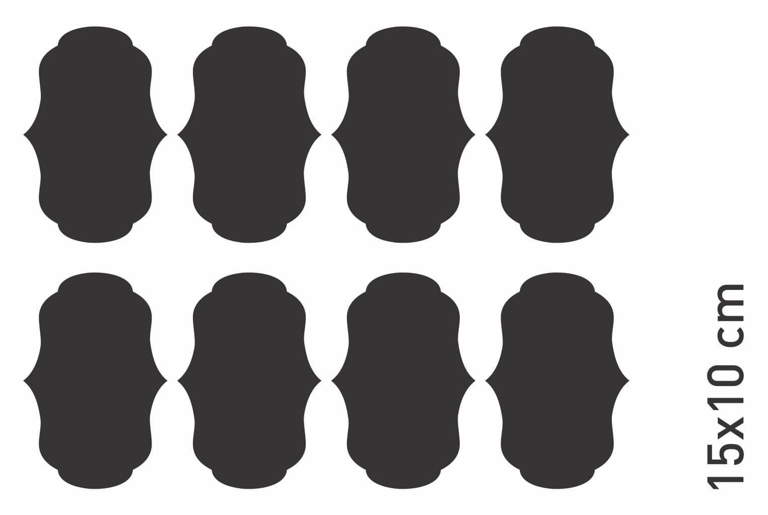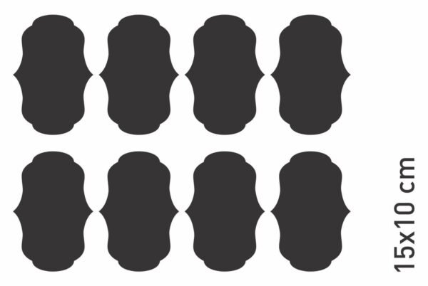 La plancha de 25 x 30 cm contiene 15 unidades de 8 x 5 cm.