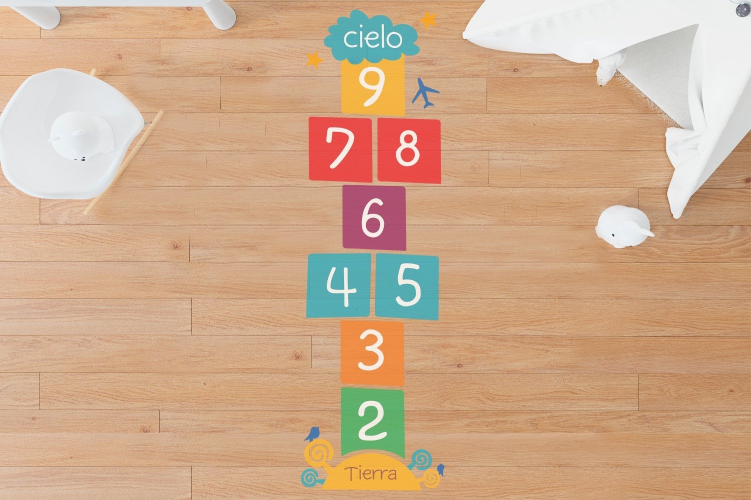 Volver a la TiendaVinilo impreso laminado con diseño de rayuela. Totalmente lavable.